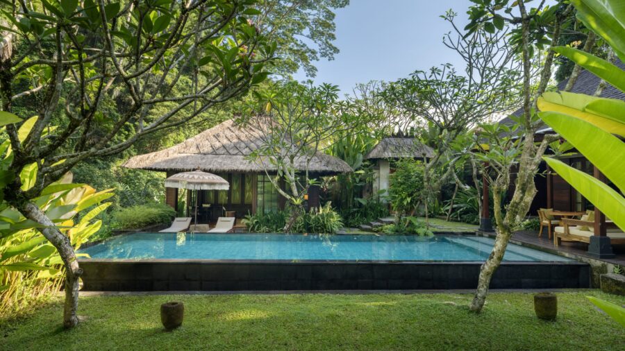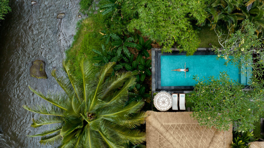 430㎡の広大な敷地を誇るプールヴィラの中でも、アユン川に面した特別なロケーション。ヴィラの設えはウブドプールヴィラと同様ながら、常に聞こえる川のせせらぎが滞在をより特別なものにします。自然の音とともに過ごす時間は、ウブドならではのヒーリング体験。心身をゆったりと解きほぐす滞在が叶います。