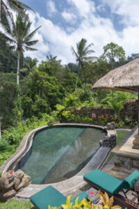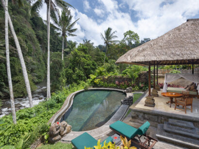 王族がオーナーを務める「ピタマハ チャンプアン リゾート&スパ」の姉妹ホテル、ザ・ロイヤル・ピタマハは、アユン川の渓谷に寄り添うように建つ自然派ラグジュアリーリゾート。深い緑と清らかな水に包まれた広大な敷地には、湧き水を利用した天然プールや川沿いのレストランが点在し、五感で自然を感じる癒しの時間が流れます。全ヴィラにはプライベートプールと広々としたリビングが備わり、伝統的なバリスタイルの設えが穏やかな安らぎを演出。特に渓谷の下に佇む「アユン ヒーリング ヴィラ」は、せせらぎを聞きながらくつろげる人気の一室です。滞在中は、バリ舞踊やガムラン体験、バリ料理教室、王族に伝わるヒーリングヨガなど、多彩なアクティビティも充実。自然と伝統の調和の中で、心から癒されるバリ時間を堪能できます。