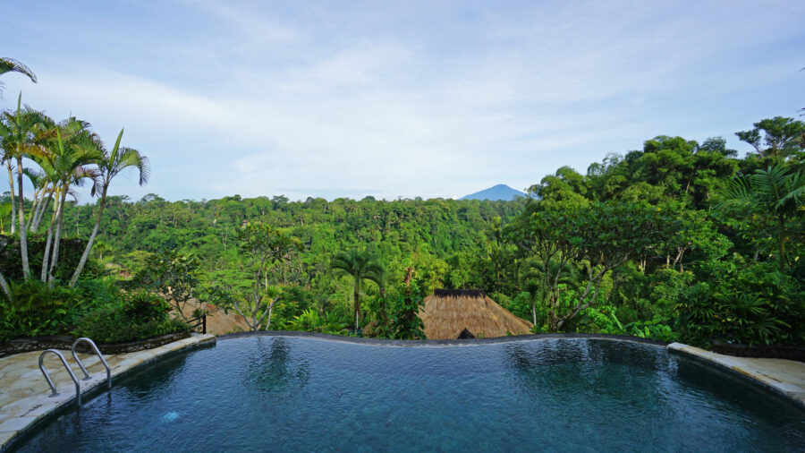 遠くにバリの霊峰アグン山を望む。※お部屋により眺望は異なります