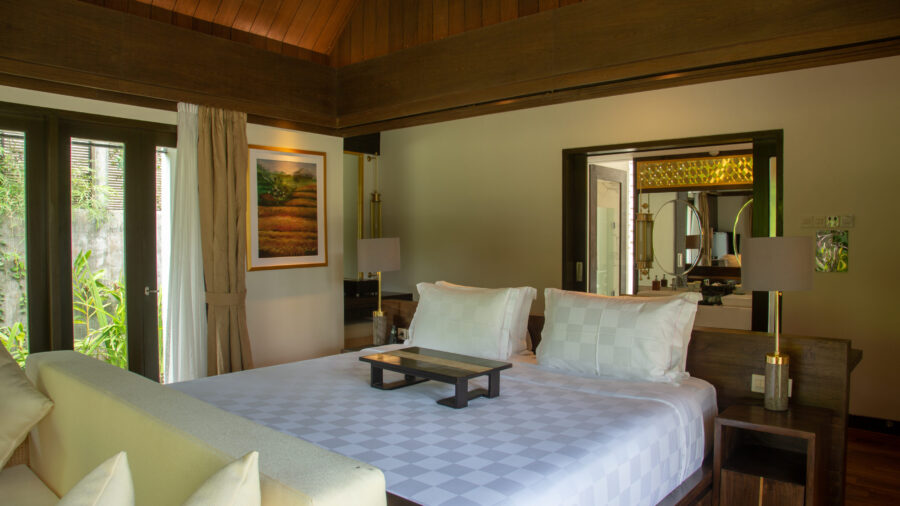 プライベートプールを挟み、シンメトリー状に客室が配置される