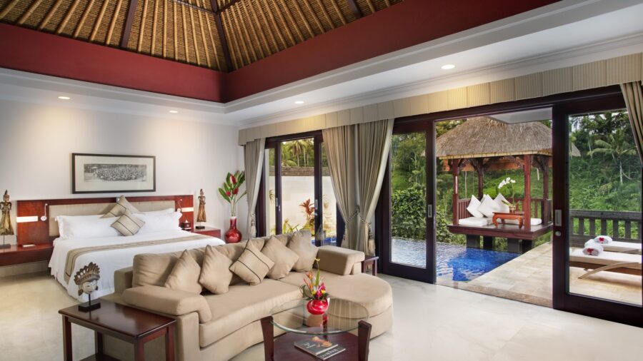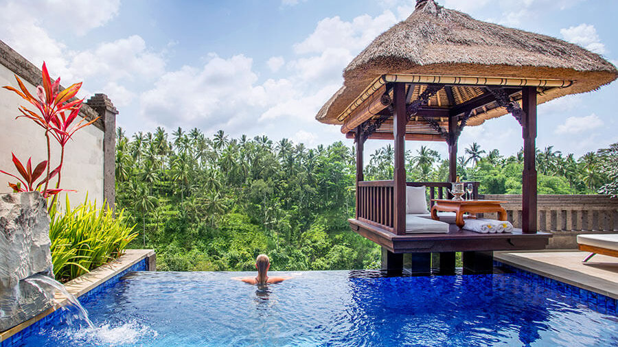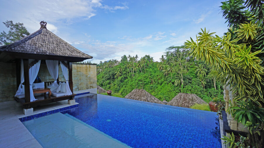 プールや東屋からは、ウブドの熱帯雨林を見渡せます。