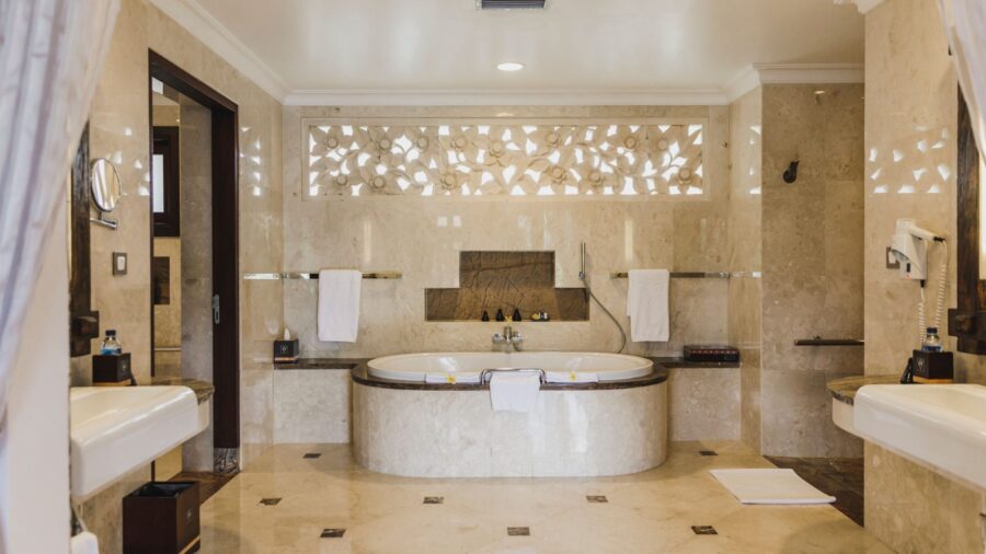 シンメトリー状のバスルーム。