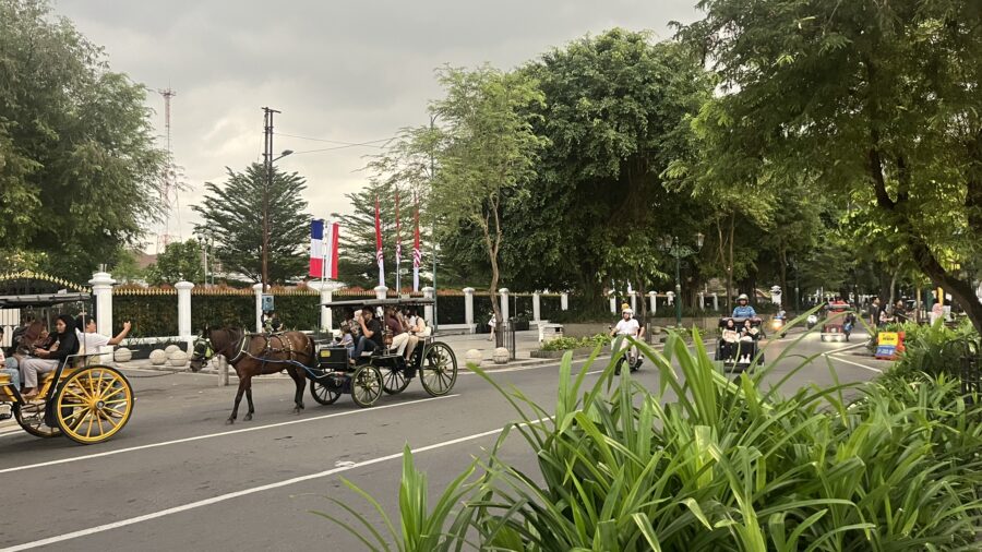 マリオボロ通りでは馬車が走っており、観光客がそれに乗って観光を楽しんでいたり、