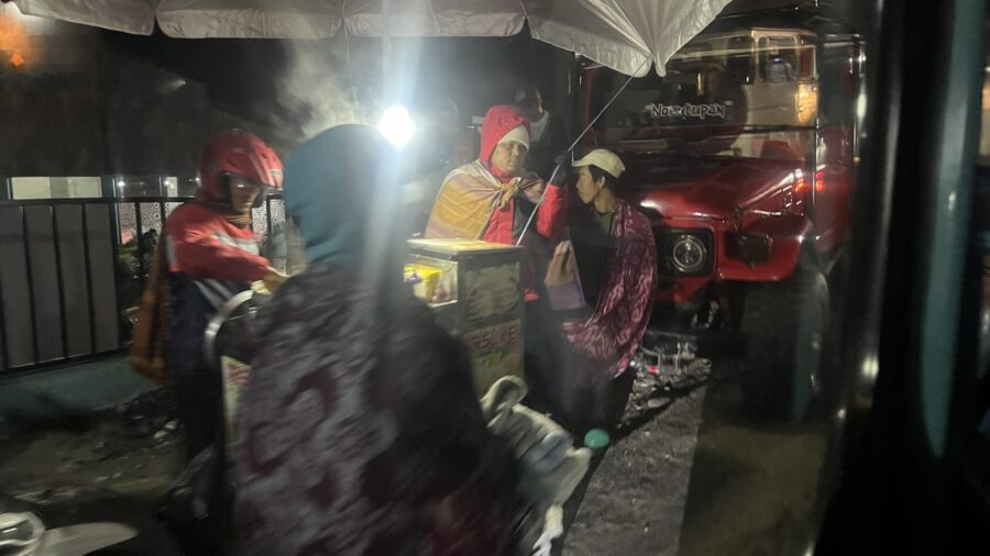 午前2時。まだまだ外は暗い中、私は常夏の国インドネシアには似つかわしくない、ウィンドブレーカーに着替えます。