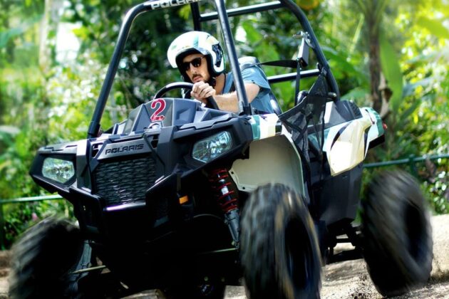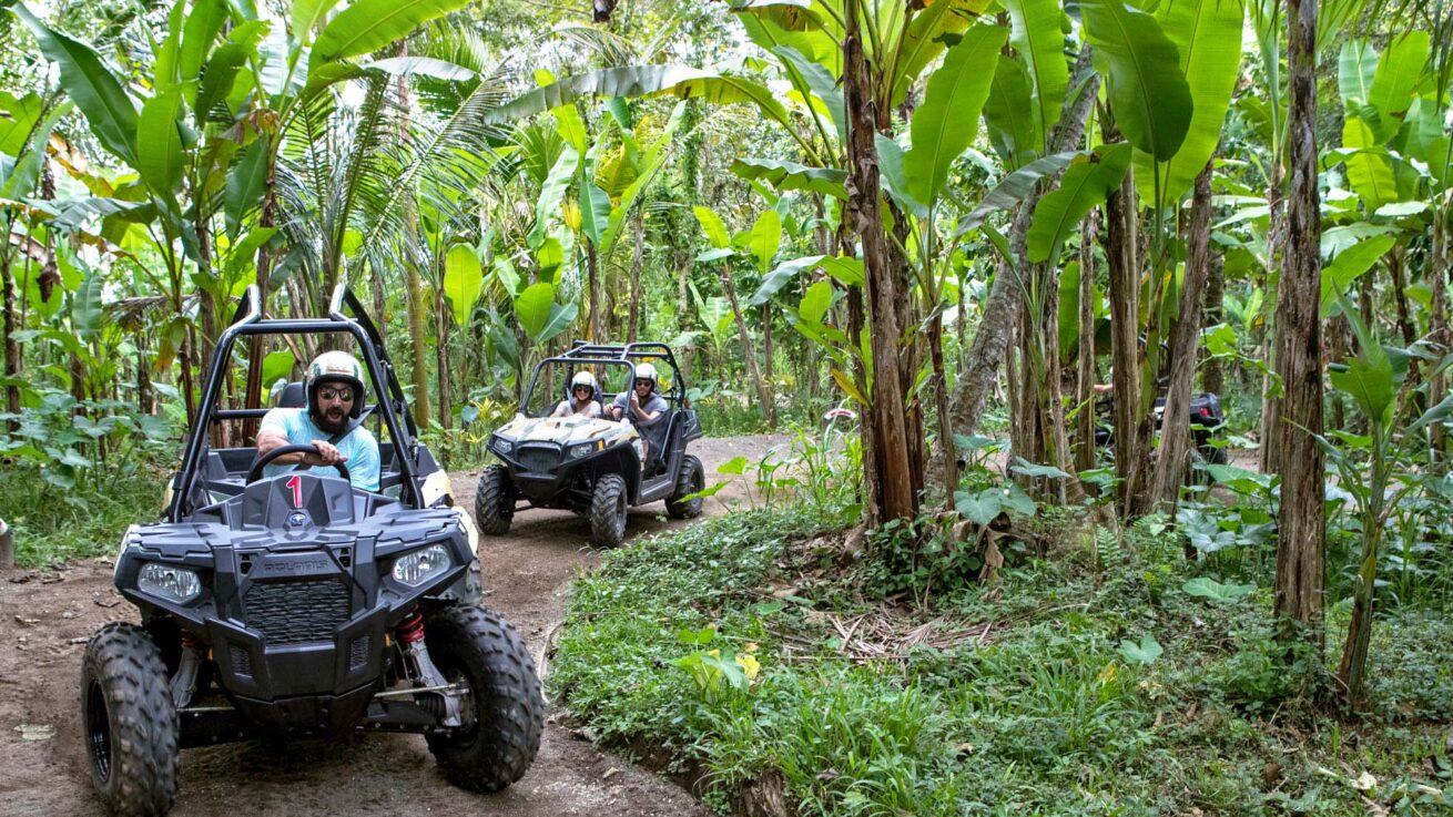 ジャングルに設けられた約20分の特設コースを、四輪バギーで駆け抜ける爽快アクティビティ。バルーンタイヤとパワフルなサスペンションを備えた車体で、急なヘアピンカーブやアップダウンのあるコースをダイナミックに走行します。ATタイプのバギーなので、自動車運転免許があればどなたでも簡単に操作できます。