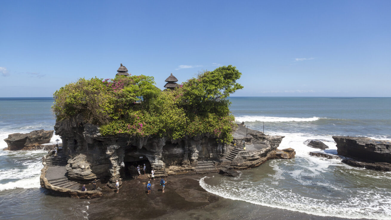 ツアーの最後は、夕日の名所として有名な「タナロット寺院」へご案内します。海に浮かぶように建てられた美しい寺院で、満潮時にはまるで海の上に浮かんでいるかのような幻想的な光景をご覧いただけます。
