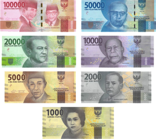インドネシアの通貨単位はRp(ルピア)です。 紙幣の種類は、8種類(100、500、1,000、5,000、1万、2万、5万、10万)となります。